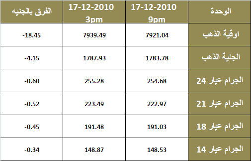 اسعار الذهب ديسمبر 2010