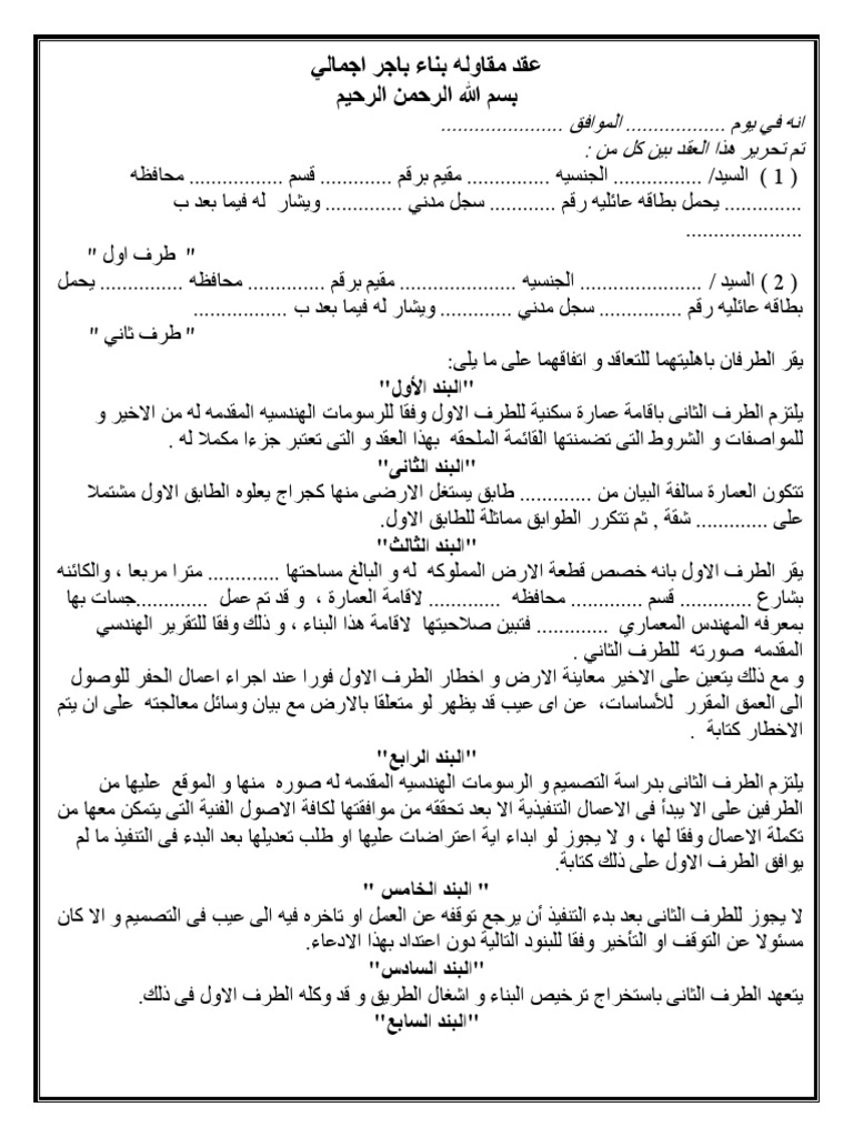 عقد مقاوله بناء باجر اجمالي